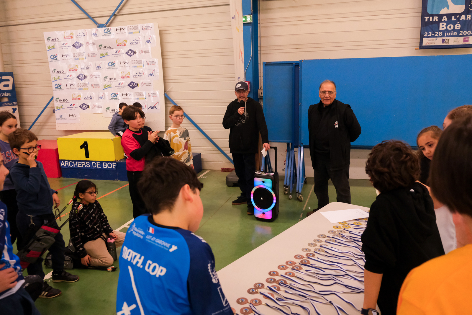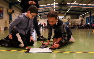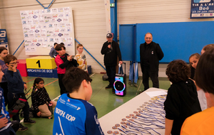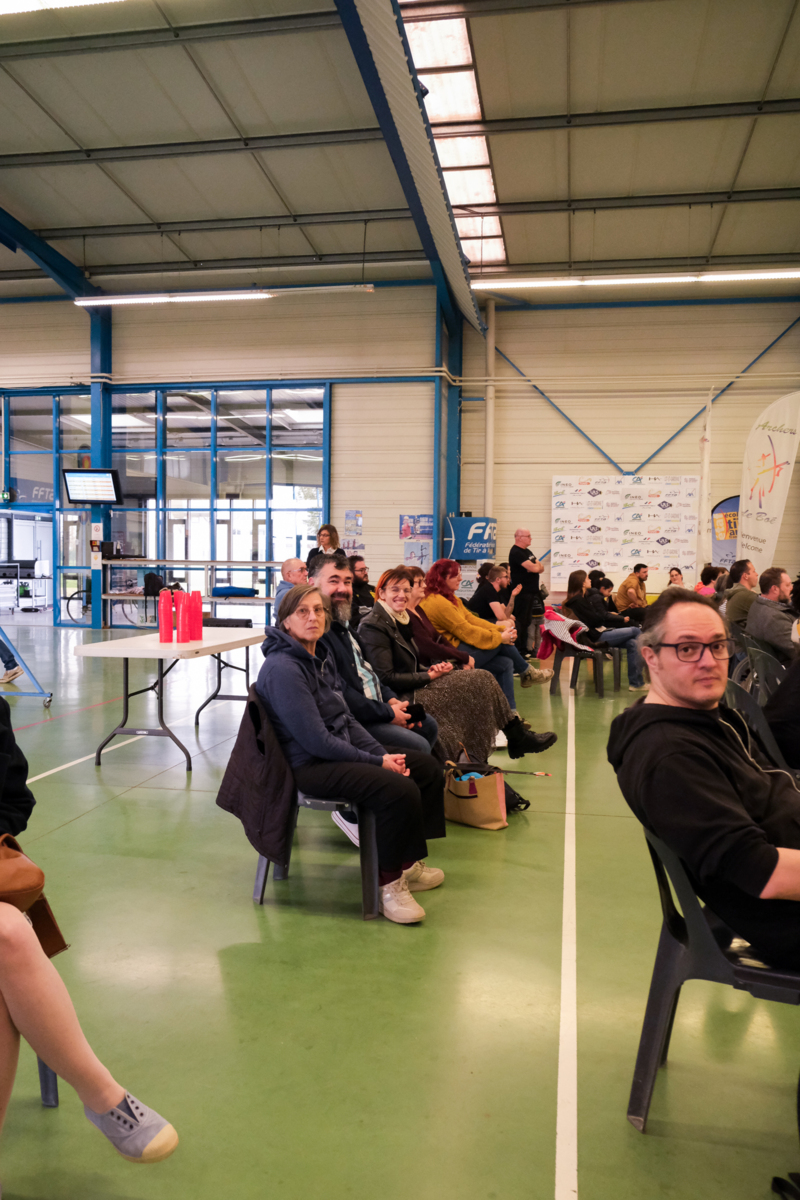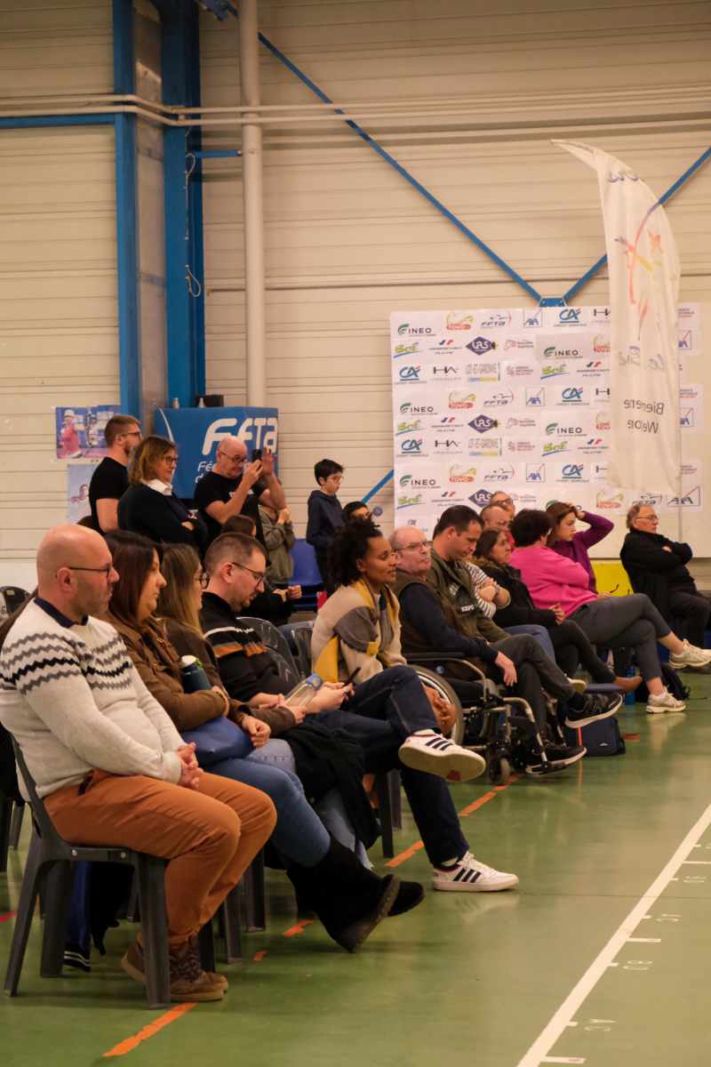 Autour d'eux, c'est une équipe de bénévoles qui a pris soin de respecter les vraies règles des compet'. Aides arbitres, arbitre, compteurs, gestion IANSEO, personnel de terrain, petits cours sur le tableau pour expliquer le comment des tournois, buvette adaptée, tout a été pensé pour se sentir le temps d'un après midi "comme les grands".