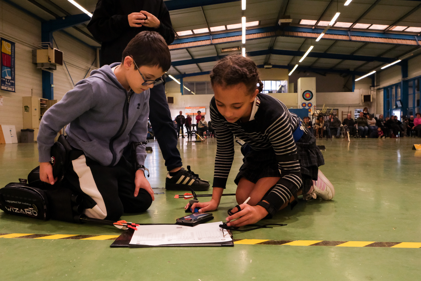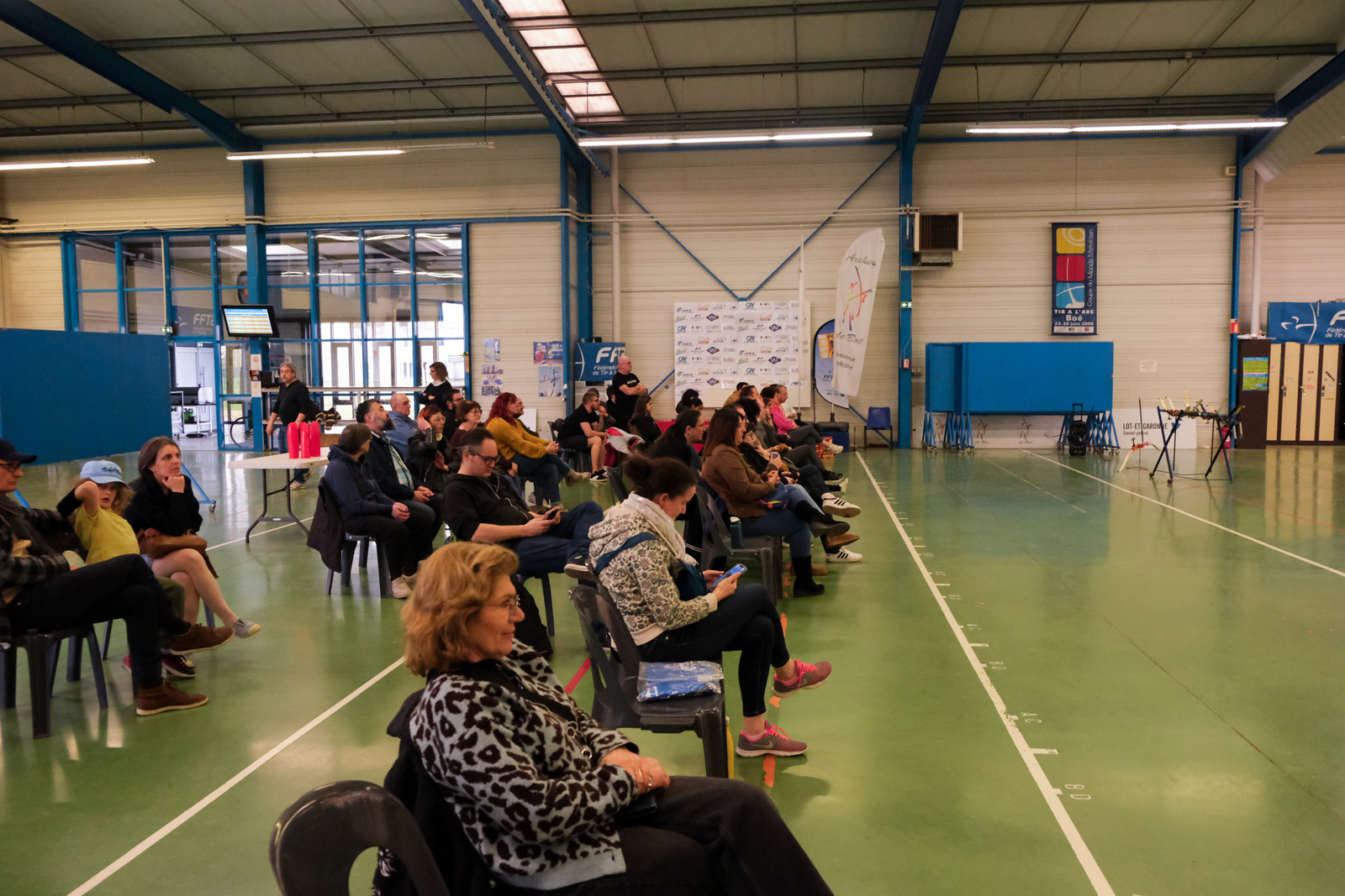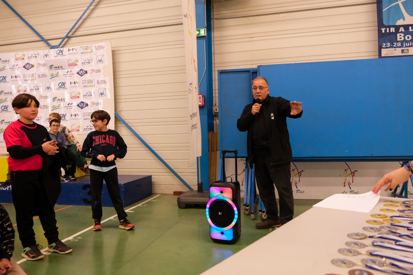 Autour d'eux, c'est une équipe de bénévoles qui a pris soin de respecter les vraies règles des compet'. Aides arbitres, arbitre, compteurs, gestion IANSEO, personnel de terrain, petits cours sur le tableau pour expliquer le comment des tournois, buvette adaptée, tout a été pensé pour se sentir le temps d'un après midi "comme les grands".