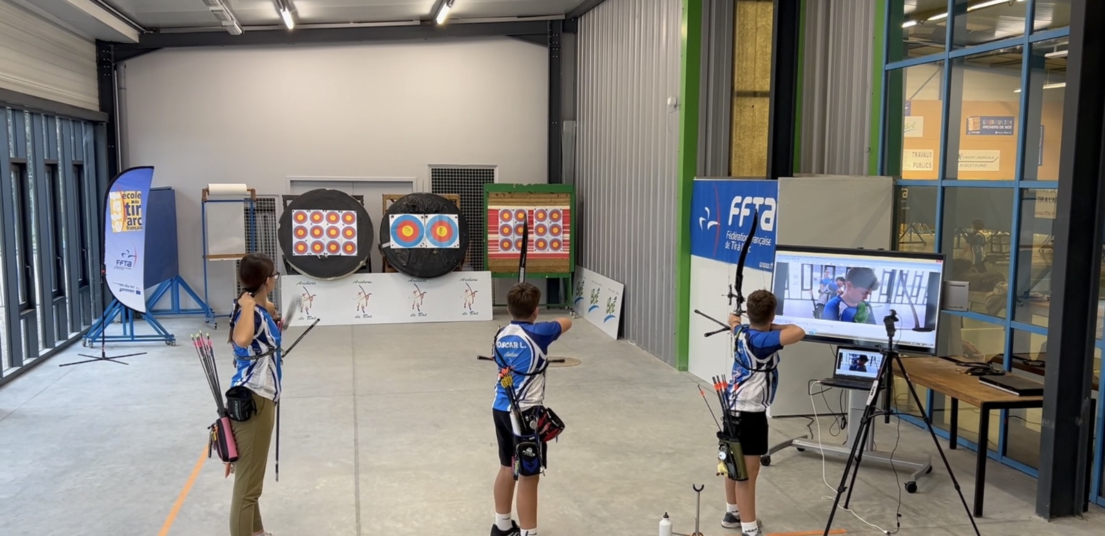 En plus de la salle originale de plus de 400m2 dédiée uniquement à l’école de tir à l’arc, notre nouvelle extension, livrée en 2024, nous permet de répondre aux exigences de ce label, avec un matériel de vidéo-contrôle dédié aux compétiteurs.