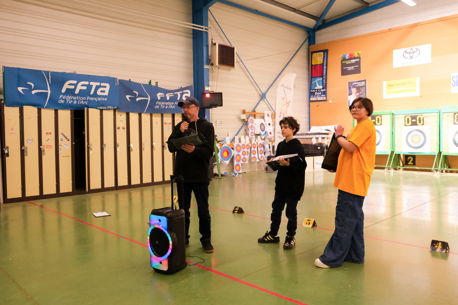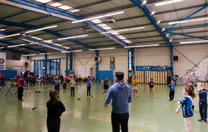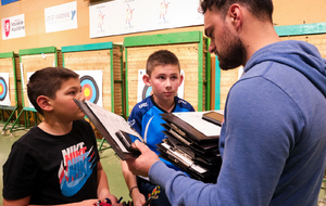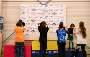 Autour d'eux, c'est une équipe de bénévoles qui a pris soin de respecter les vraies règles des compet'. Aides arbitres, arbitre, compteurs, gestion IANSEO, personnel de terrain, petits cours sur le tableau pour expliquer le comment des tournois, buvette adaptée, tout a été pensé pour se sentir le temps d'un après midi "comme les grands".
